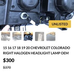 15 16 17 18 19 20 CHEVROLET COLORADO RIGHT HALOGEN HEADLIGHT LAMP OEM$350Everett, WA
