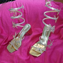 Women's Size 7 Gold Butterfly Wrap Around Chunky Heels $20Seattle, WA