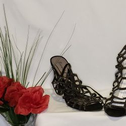 Black strappy gemmed heels size 6$15Snohomish, WA