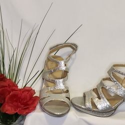 Silver glitter cut strap heels size 6$20Snohomish, WA
