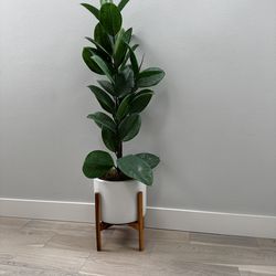 Large Faux Rubber Tree in Mid-Century Modern White Planter & Stand$85Kirkland, WA