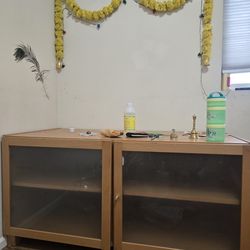 Move out sale: Wooden Storage Cabinet with Frosted Glass Doors$10Bothell, WA