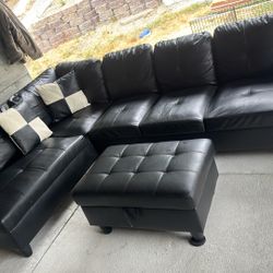 New Black Leather Sectional Couch And Ottoman $650Renton, WA