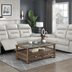 Real 100% Top Grain Leather Power Reclining Sofa & Loveseat Set – Laconia Collection, Silver Finish$1,999Seattle, WA