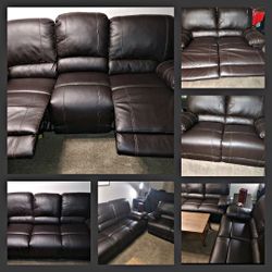 New Brown Leather 3pc Reclining Set W/Storage Compartment Built In Cup Holders & Drop Down Table$1,900Kent, WA