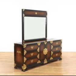 Chinoiserie Asian Inspired Tigerwood Brass Hollywood Regency Vintage Dresser With Mirror$450Seattle, WA