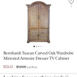 Bernhardt Tuscan Carved Oak Wardrobe Mirrored Armoire Dresser TV Cabinet 90"$1,400Seattle, WA