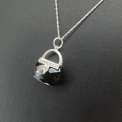 14kt White Gold Onyx Purse With Diamonds Necklace & Pendant Combo 2.94grams 165072 32$160Federal Way, WA