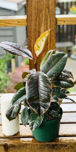 Live indoor variegated Ruby Rubber tree (Tineke, Ruby Ficus Elastica) plant in a plastic pot—firm price$22Seattle, WA