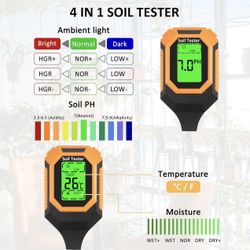 4-in-1 Soil Moisture Meter Digital PH Meter/Soil Moisture/Plant Temperature/Sunlight Intensity, Backlight LCD Display, Soil Test Meter for Garden, Law$19Issaquah, WA