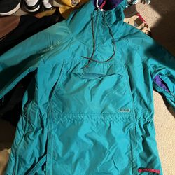 Vintage Colombia Pull Over Rain jacket Kangaroo Pouch Teal Turquoise Perfect Condition Size L$50Marysville, WA
