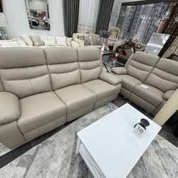 Power Electric Cream White Leather Fully Reclining Sectional Couch $1,400Burien, WA