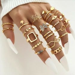 Brand NEW, 23pcs Personality Exaggerated Golden Color Flower Butterfly Rhinestone Faux Pearl Ring Set Women's Joint Ring$22Redmond, WA