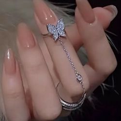 Luxury Butterfly Chain Open Ring Inlaid Rhinestone Delicate Jewelry $18Redmond, WA