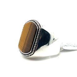 925 Sterling Silver Mens Gemstone Ring Rectangle Tiger Eye Beaded Edge 12.70grams Size 10 160852 1$60Seattle, WA