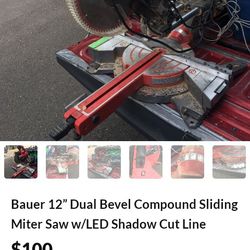 Bauer 12” Dual Bevel Compound Sliding Miter Saw w/LED Shadow Blade Line$100Kirkland, WA