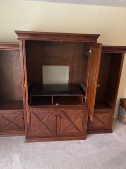 Spacious Brown Wood Entertainment Center with Woven Cabinet Doors$175Renton, WA