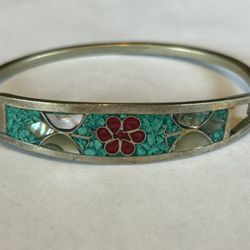Vintage Sterling Silver Mother Of Pearl/Abalone Inlay Hinged Bracelet Size 7.5”$40Lake Stevens, WA