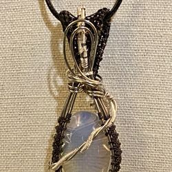 (17) Hand-Crafted Wire-Wrapped Pendant. Silver And Black Wire With Milky White Cabochon. $10Mukilteo, WA