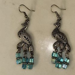 Handmade Aqua Peacock Earrings 2”$12Bothell, WA