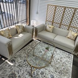 New Cream Leather Sofa Set with Gold Trim Elevate your living space with this luxurious cream leather sofa set, featuring sophisticated gold trim. A $1,750Bellevue, WA