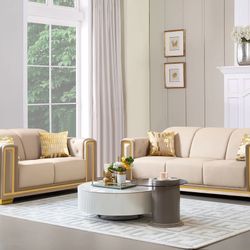 New Cream Leather Sofa Set with Gold Trim $1,550Covington, WA
