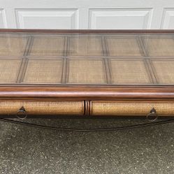 Vintage Hardwood & Rattan Coffee Table w/ Glass Top + Storage Drawers$225Redmond, WA
