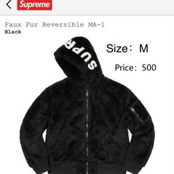 Brand New Supreme Faux Fur Reversible MA-1 Hoodie$500Bellevue, WA