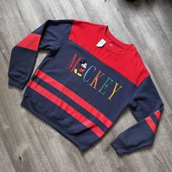 NWT Disney Mickey Mouse Vintage Embroidered Stripe Panel Sweatshirt $45Bothell, WA