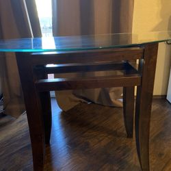 Stunning Vintage-Style Glass & Golden Scroll End Tables – $125 Pair$125Shoreline, WA
