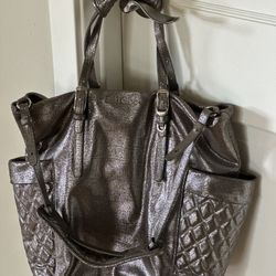 B. Makowsky Metallic Pewter Silver Grey Leather Shoulder Bag Purse Tote$45Bothell, WA