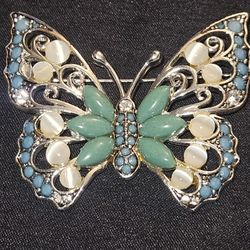 BEAUTIFUL LIZ Claiborne silver toned butterfly brooch pin with stones$35Seattle, WA