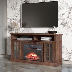 Brown Wooden Tv Stand With Fire Place $175Bothell, WA