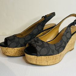 Coach Platform Cork Wedge Heel Peep Toe Sandals$55Bellevue, WA