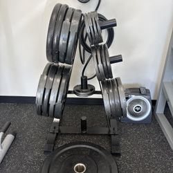 Gym Sale, Bench Press Set, Power Tower, Punching Bag With Gloves, 2 Barbells And An Ez Bar, 2 Sets Of Clips, Weight Plate Rack With 4x45’s 4x35’s 4x25$1,000Snohomish, WA
