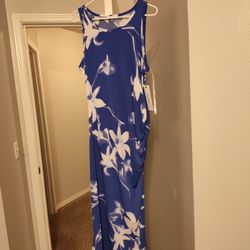 Brand New Calvin Klein Beautiful Blue And White Floral Maxi Dress With Left Side Ruffles, Size Large$50Covington, WA