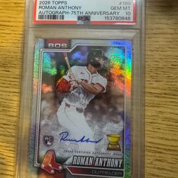 ROMAN ANTHONY 2026 TOPPS #189 ROOKIE REAL ONE AUTO 75TH ANNIVERSARY RC 39/75 PSA GEM MT 10$8,500Tacoma, WA