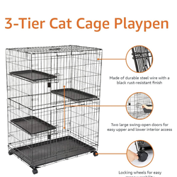 Amazon Basics Large 3-Tier Cat Cage Playpen Box Crate Kennel - 91cm x 57cm x 128cm Inches, Black$200Bothell, WA