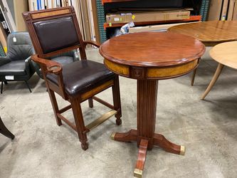 THOMAS AARON Vintage Ornate Carved Wood Billiards Chair and Bistro Height Table (Set of 2)$199Seatac, WA