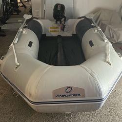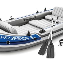 Intex Excursion 5 inflatable boat, Newport Vessels 55lb thrust electric trolling motor. Interstate Group 27DC Marine/RV lead-acid battery. $280Mukilteo, WA