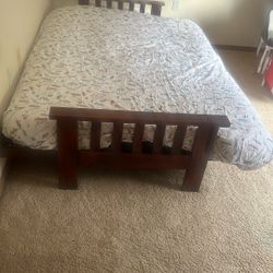 Oak Futon Frame and Full Mattress with Camo And Brown Covers$80Seattle, WA