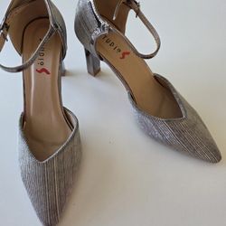 Studio S Silver Metallic Pointed Toe Ankle Strap Block Heels Sz 38 7.5 or 8$25Edgewood, WA
