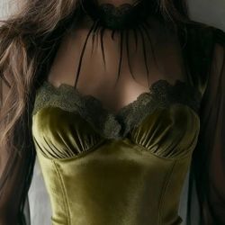OLIVE GREEN VELVET TOP WITH SHEER SLEEVES AND LACE TRIM ( SIZE XLARGE )$25Bothell, WA