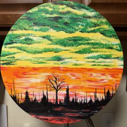 SUN MOON SLEEPY KITTEN 20INCH ROUND CANVAS PAINTING$15Auburn, WA