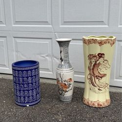 Vintage Asian Ceramic Vases & Garden Stool Set – Chinoiserie Decor$100Spanaway, WA