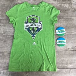 Lot of 2 Vintage Seattle Sounders Soccer Club Buttons and Youth Shirt$10Steilacoom, WA