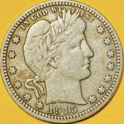1915 U.S. BARBER SILVER QUARTER 25c COIN (VF-Very Fine)$50Bellevue, WA