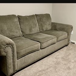 ASHLEY FURNITURE Plush Speckled Brown Roll Arm 3 Seat Sofa with Nailhead Trim and Wooden Bun Feet$199Seatac, WA