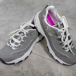 No Stinky Feet Here ~ Women's Sketchers D'Lites Gray White Leather Shoes Size 7$35Puyallup, WA