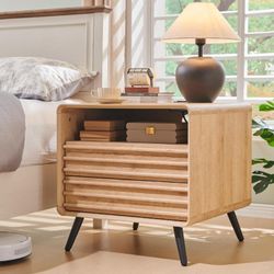 24" Nightstand with Charger Station, Mid Century Modern Fluted End Table with 2 Drawers, Wooden Side Table with Open Cubby Storage for Living Room, Be$90Tumwater, WA